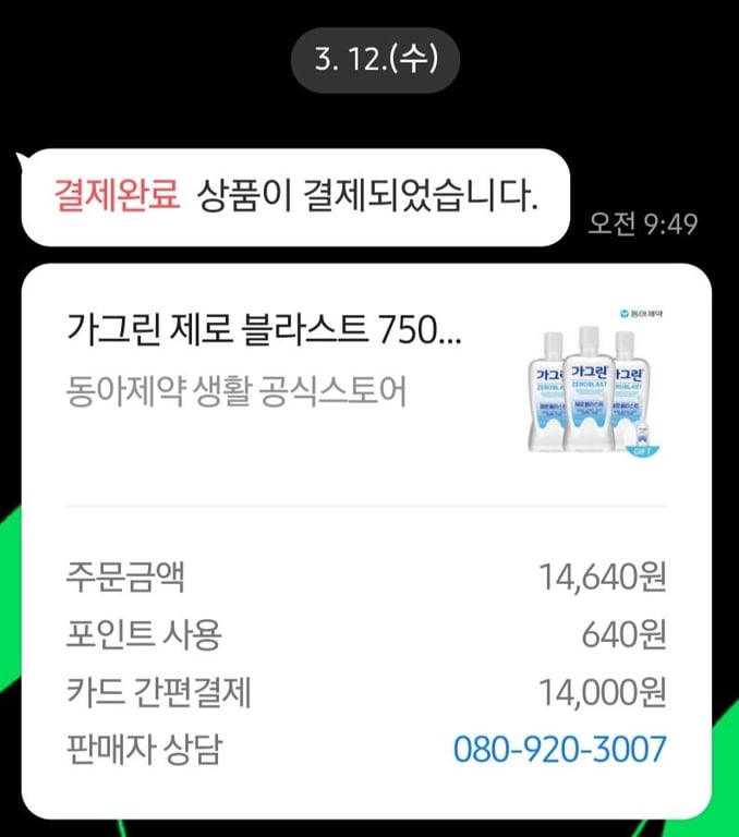 가그린이 떨어져서, 아침에 결제 주문을 했습니다.