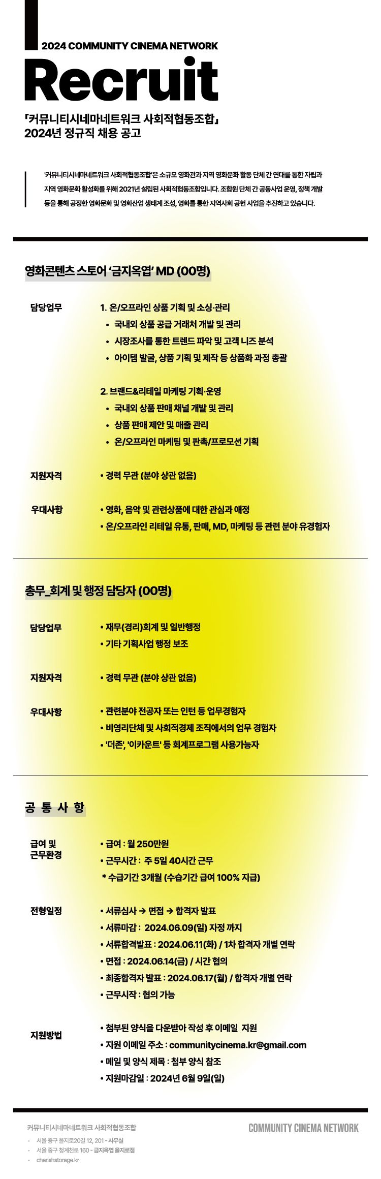 [2024년 정규직 채용] 영화 콘텐츠 스토어 금지옥엽 MD 및 총무(회계 및 행정 담당)