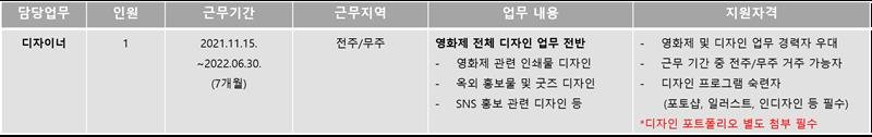 지원자격 : 영화제 및 디자인 업무 경력자 우대