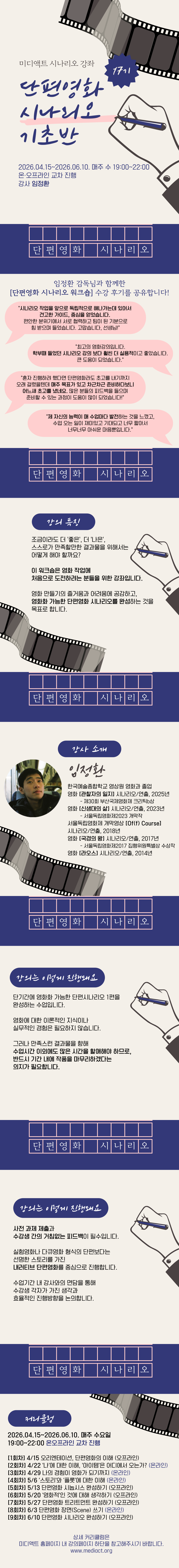 [미디액트 강좌] [시나리오 기초반] 단편영화 시나리오 워크숍 17기 - 04/15(수) 개강!!