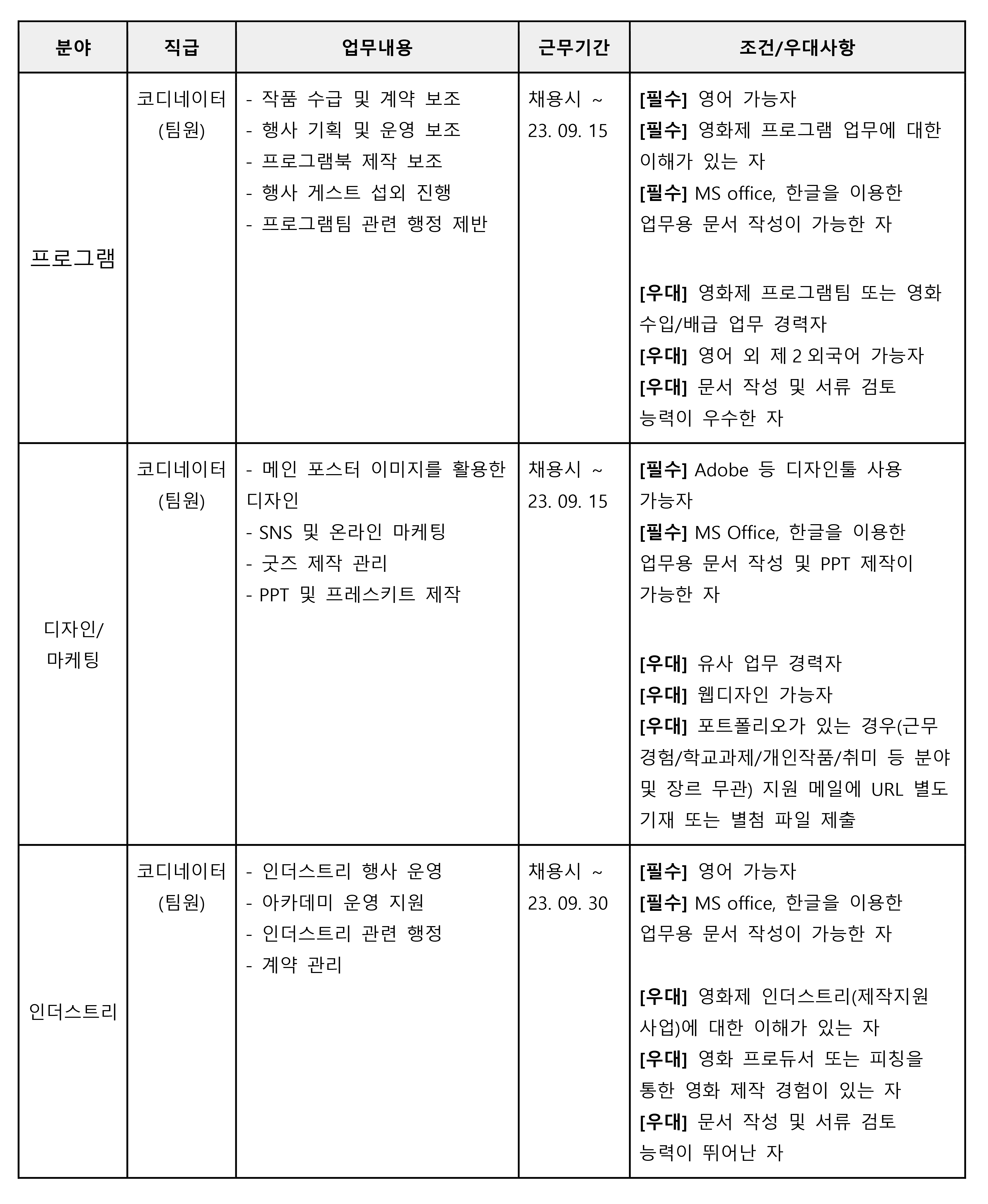 마. 영화제 스태프 및 자원 활동 경험자 우대