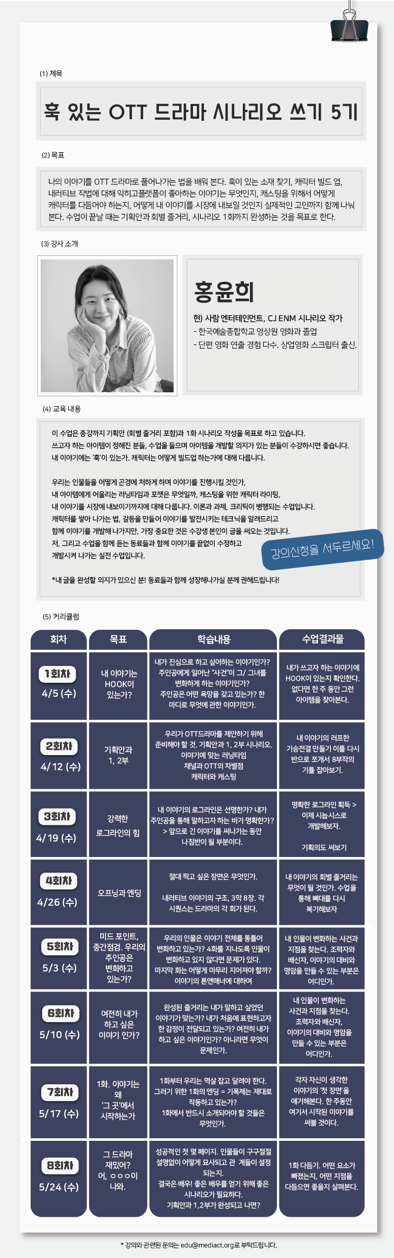 훅 있는 OTT 드라마 시나리오 쓰기 5기